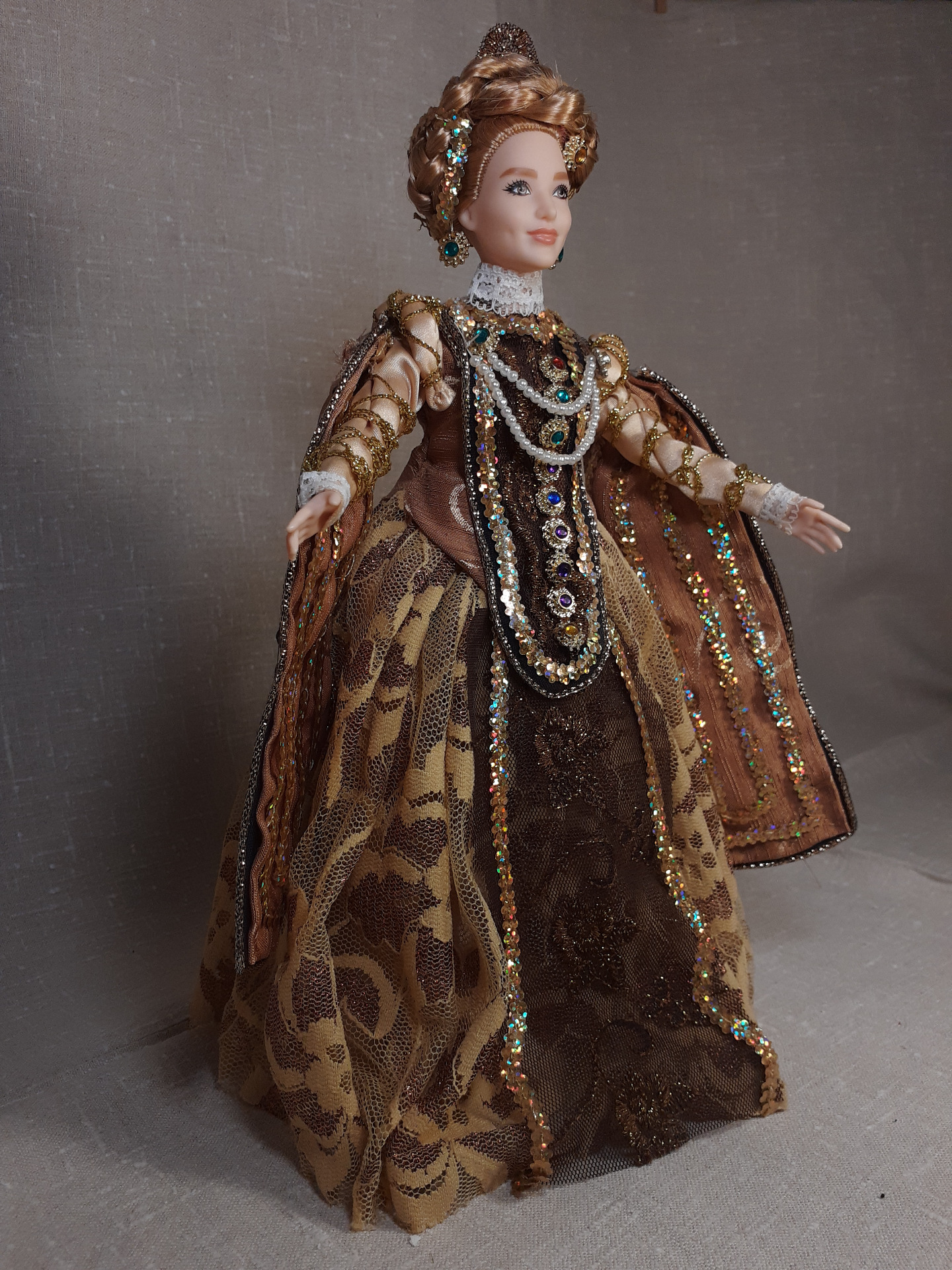"Renesančná bronzová s výšivkou".