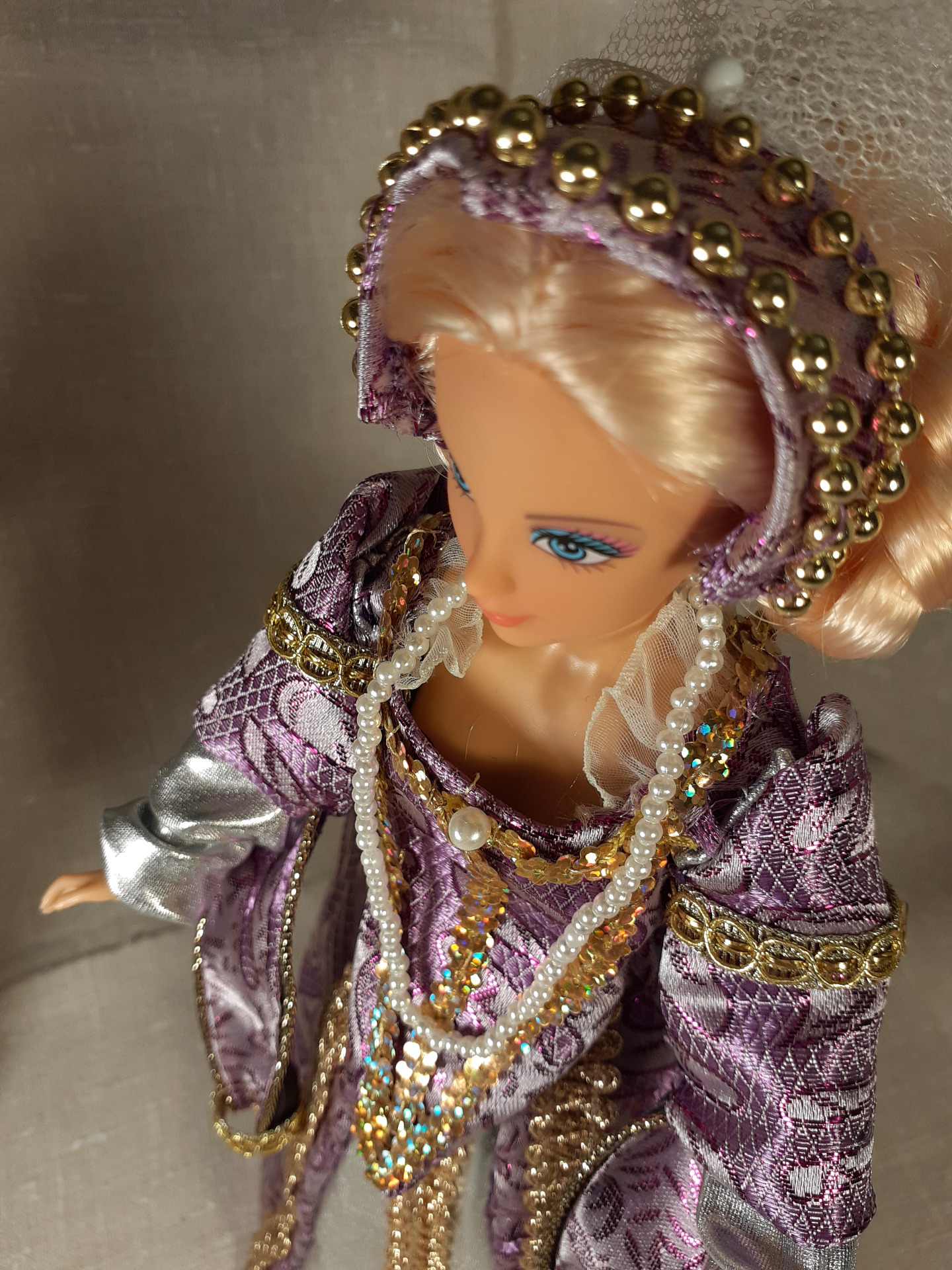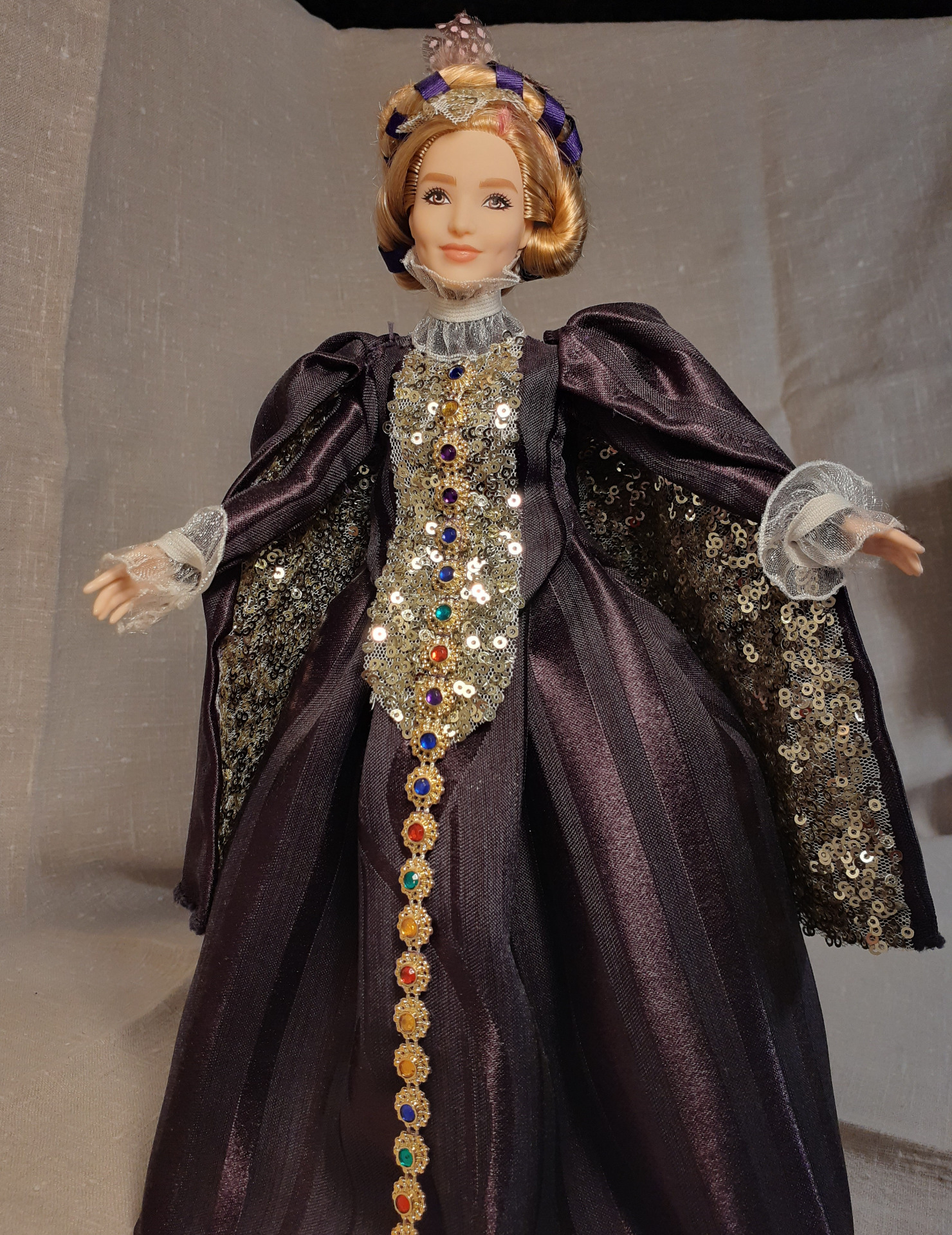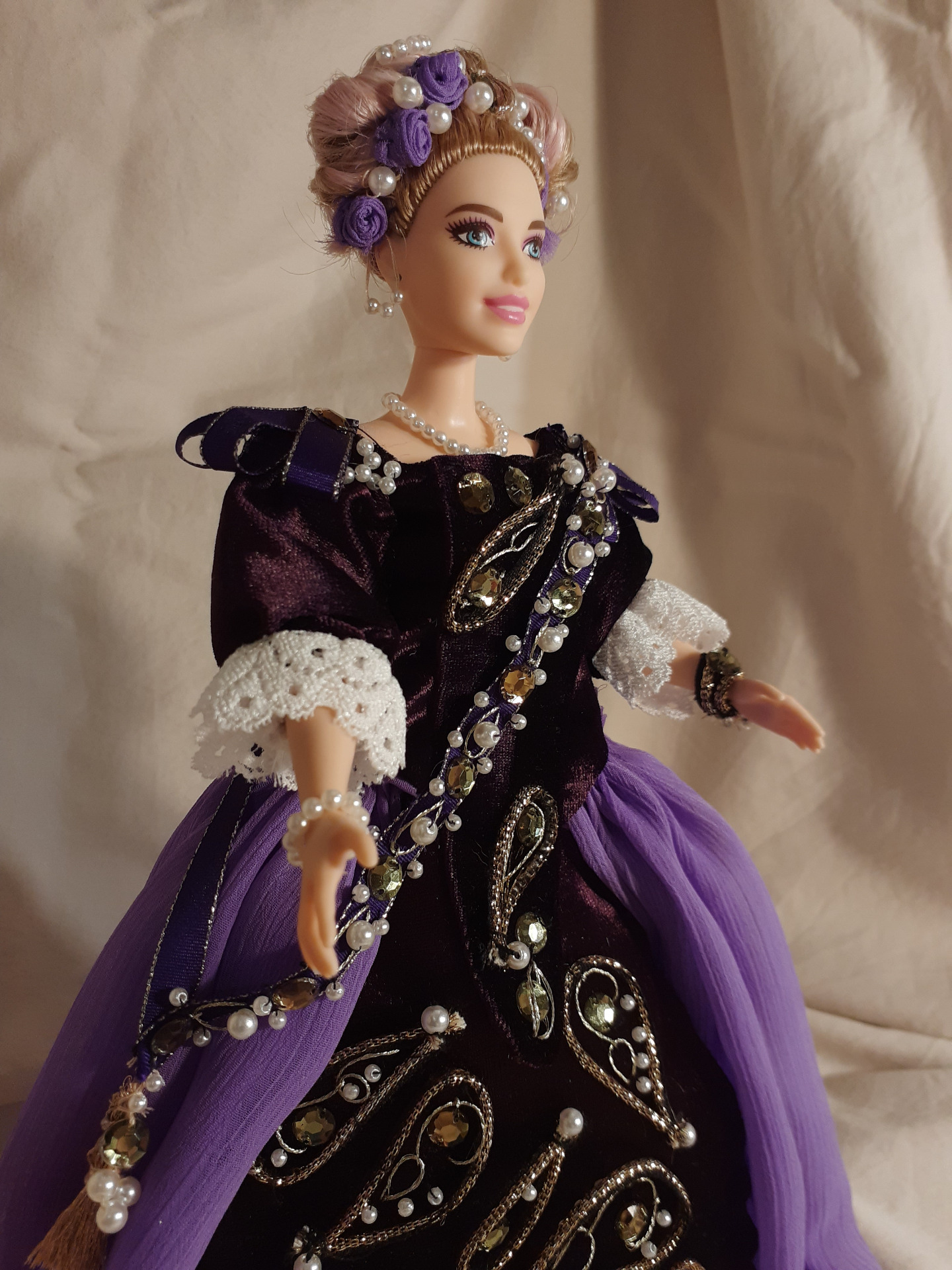 "Fialová baroková kráľovná so šerpou".