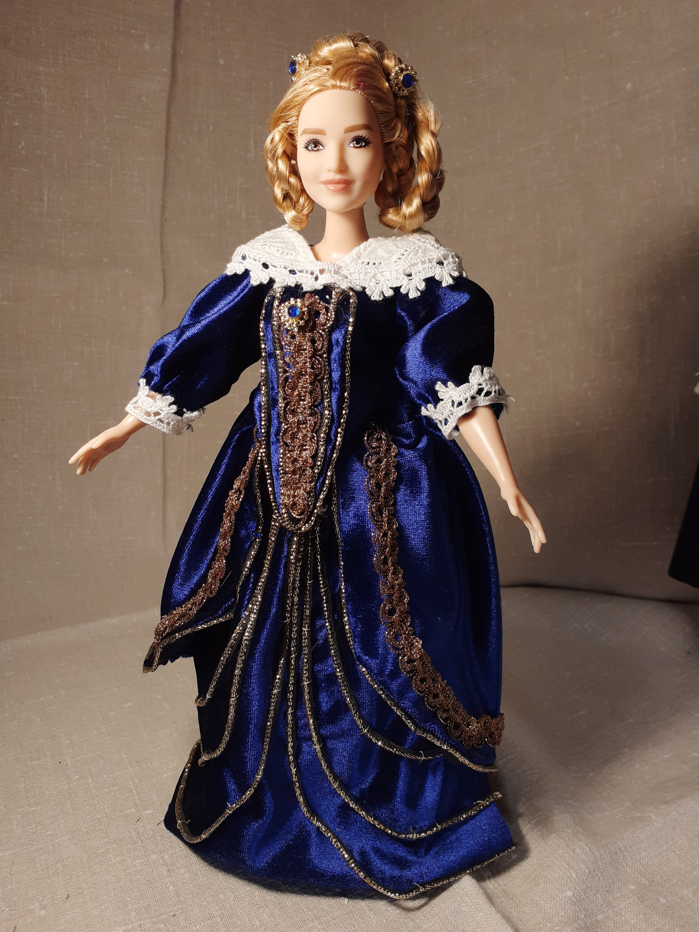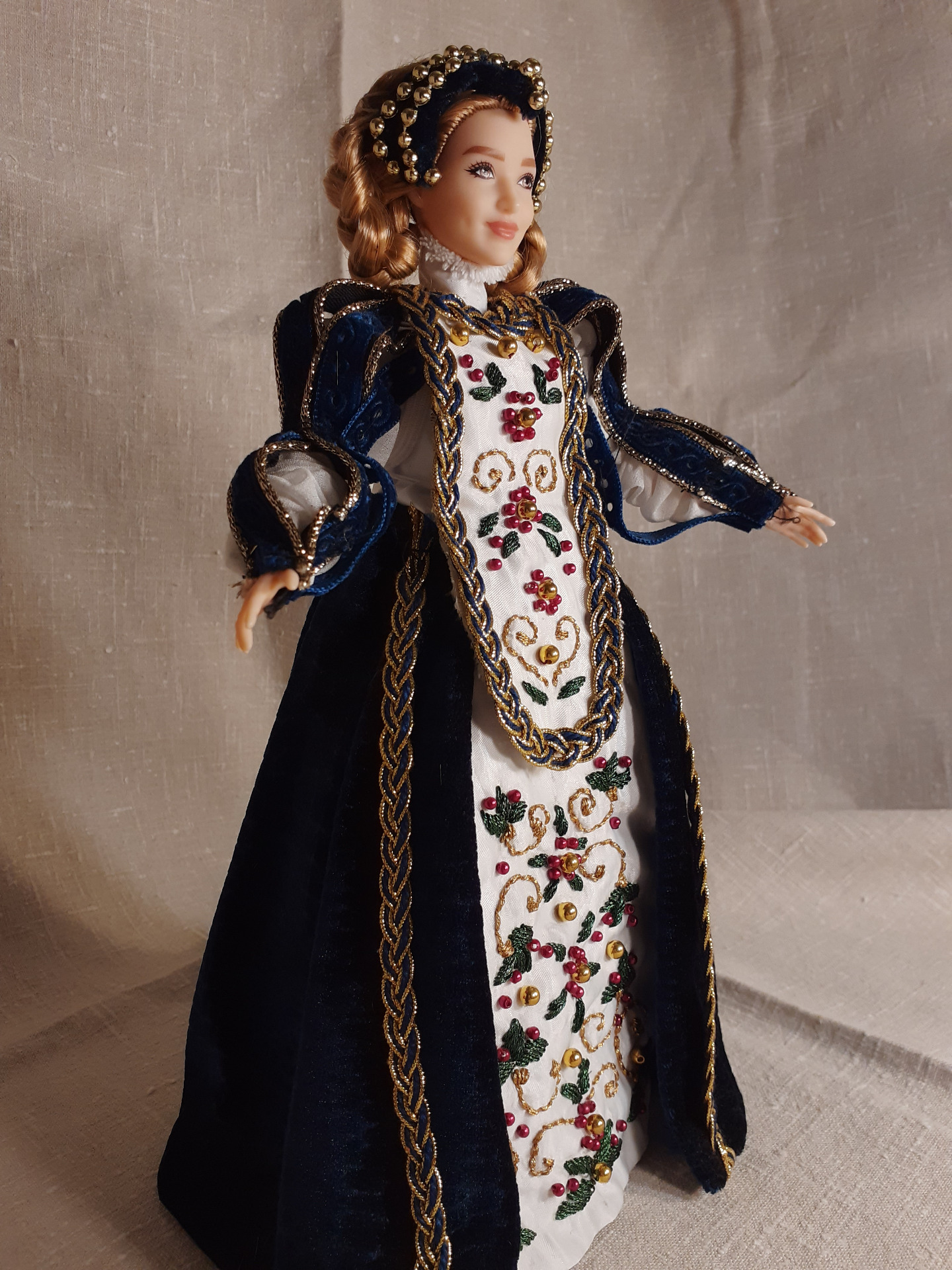 "Renesančná tmavomodrá vyšívaná".